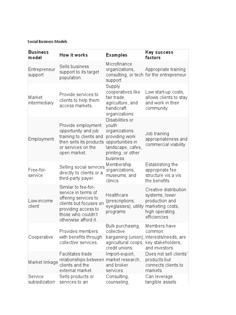 An Overview of Social Business Models Examples and Key Success Factors